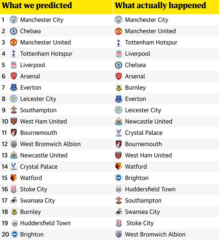 Premier League 17 18 Review Our Predictions Versus Cold Hard Reality Football The Guardian